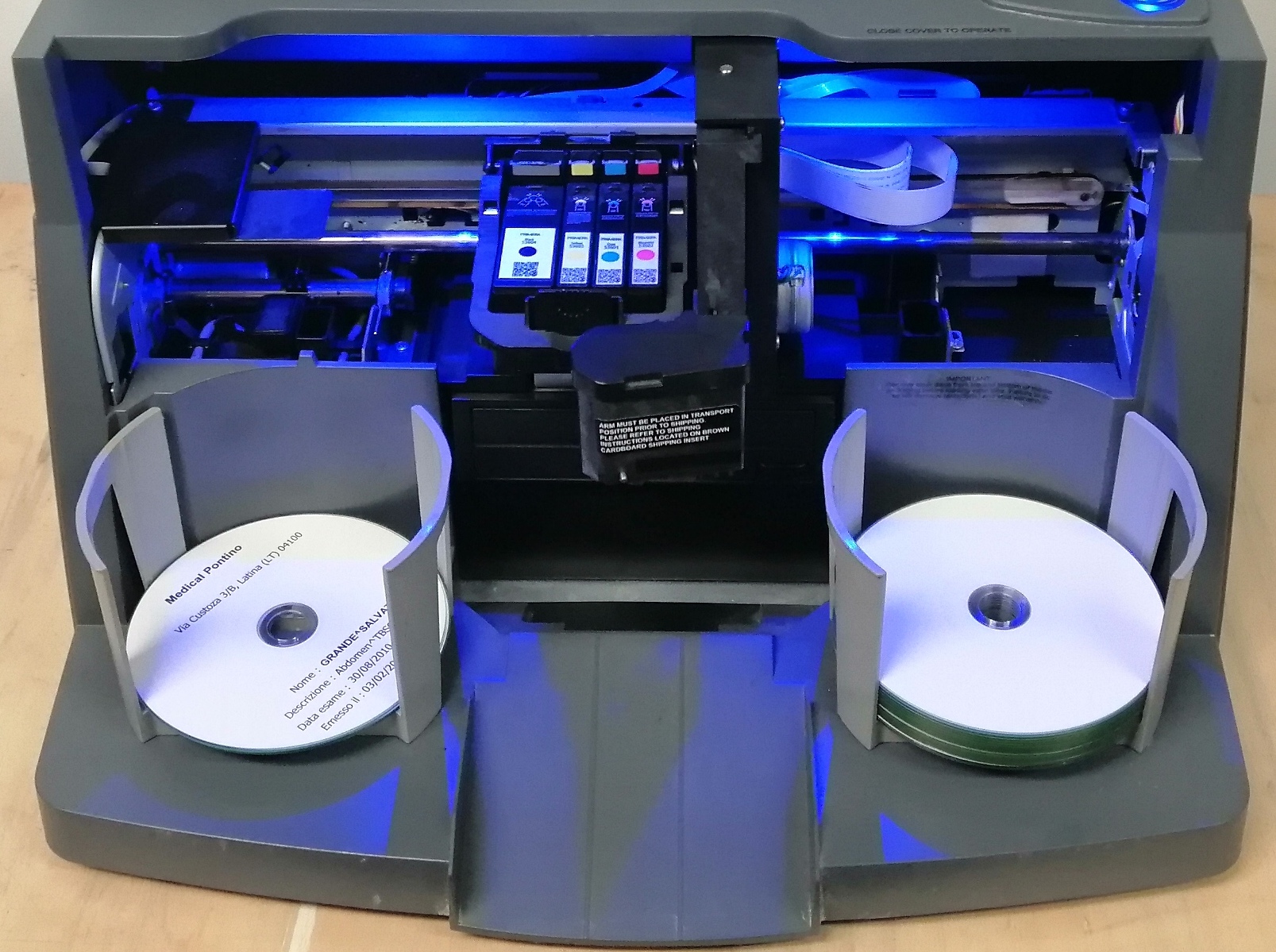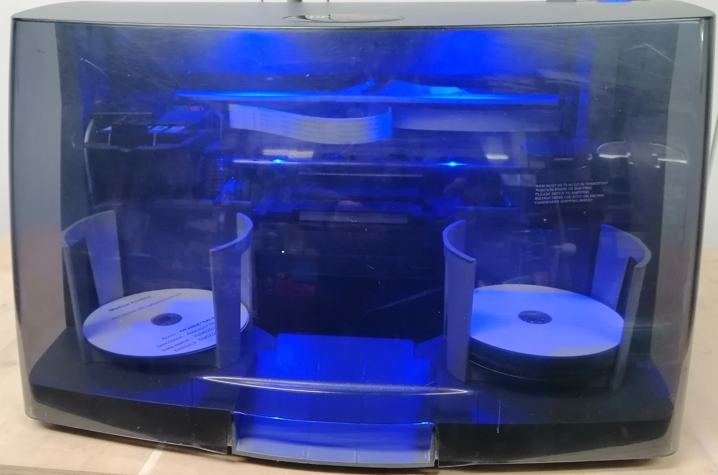DP-4101 Disc Publisher anno 2012 (usato-revisionato 2022-garantito) Sistema di Masterizzazione e stampa robottizzato. Capacità max 100 dischi, con 1 unità di masterizzazione. utilizza cartucce separate, Ciano, Magenta, Giallo e Nero.(Garanzia: 6 mesi); (Spedizione/Trasporto/Installazione: Esclusi). Bravo 4101 (1 unità CD-DVD) Masterizza e stampa CD, DVD e DVD-DL, capacità 100 dischi con chiosco.